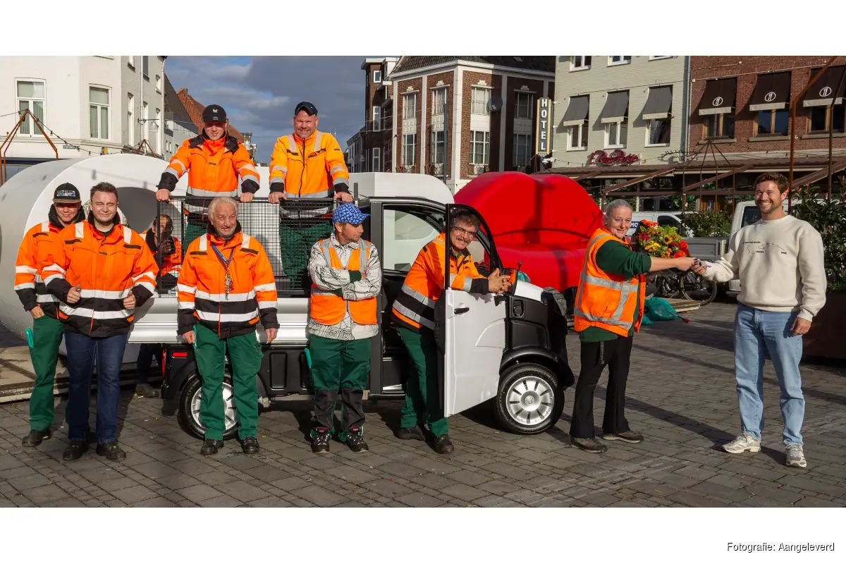 ROERMOND - Op donderdag 9 oktober overhandigde Carlo Terrijn van Brommobiel Center Limburg de nieuwe elektrische Aixam aan het team Reiniging Binnenstad van Groen & Doen Roermond.